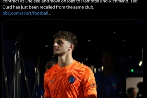 此前,切爾西18歲門將庫德剛剛被俱樂部召回,提前結(jié)束在漢普頓和里士滿的租期。