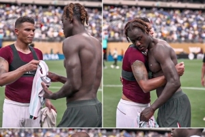 此役40歲的蒂亞戈-席爾瓦首發(fā)出戰(zhàn)老東家切爾西,為弗魯米嫩塞踢滿全場,賽后查洛巴與他互換球衣,切爾西門將羅伯特-桑切斯也與他擁抱寒暄。