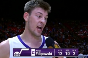 上半場(chǎng),爵士球員菲利波夫斯基表現(xiàn)出色,出戰(zhàn)13分鐘,投籃9中3,三分球6中2,罰球5中4,拿到12分10籃板1助攻2蓋帽的數(shù)據(jù)。