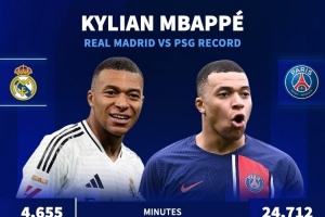 體育資訊7月9日訊 德國(guó)轉(zhuǎn)會(huì)市場(chǎng)統(tǒng)計(jì)了姆巴佩效力皇馬和巴黎期間的數(shù)據(jù),并做出對(duì)比。