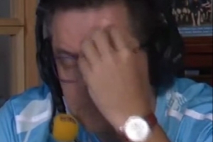 在皇馬被打進第二球后,鐵桿皇馬球迷&《阿斯報》主編龍賽羅摸頭、捶腿、搖頭,顯得很無奈。