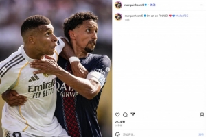 馬爾基尼奧斯曬出自己的多張比賽照,其中就包括了和姆巴佩的對(duì)位照,他還配文道:“我們晉級(jí)決賽了!大巴黎前進(jìn)!”