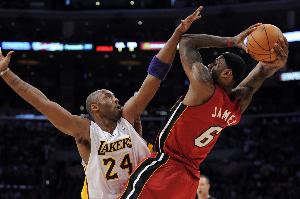 本場比賽,熱火以99-90擊敗湖人,詹姆斯得到39分7籃板8助攻,科比得到22分4籃板。