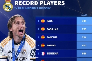 體育資訊7月10日訊 莫德里奇結(jié)束皇馬生涯,德國轉(zhuǎn)會(huì)市場(chǎng)列出了皇馬隊(duì)史出場(chǎng)榜,勞爾741場(chǎng)居首,莫德里奇597場(chǎng)排名第8位。