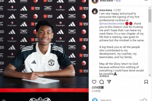 比伊克社媒曬出簽約照片,配文:“我非常高興和自豪地宣布,我與曼聯(lián)簽訂了我的第一份職業(yè)合同,感謝這家歷史悠久的俱樂部對我的信任,我希望我能在這里留下自己的印記。這是我人生新篇章的開始,有新的目標要實現(xiàn),但我的心態(tài)依然如故?!?/p>