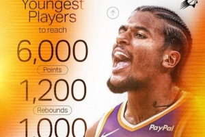 歷史最年輕的6000分+1200籃板+1000助攻的球員前八:詹姆斯、愛(ài)德華茲、科比、麥迪、東契奇、杰倫-格林、字母哥、布克。