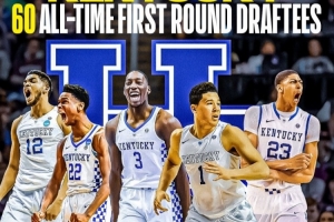其中肯塔基大學(xué)有60個首輪簽、高居第一,像現(xiàn)役的就包含亞歷山大、濃眉、唐斯還有布克等人。而第二的是杜克大學(xué),他們一共出品過59個首輪,第三的則是北卡的55個。