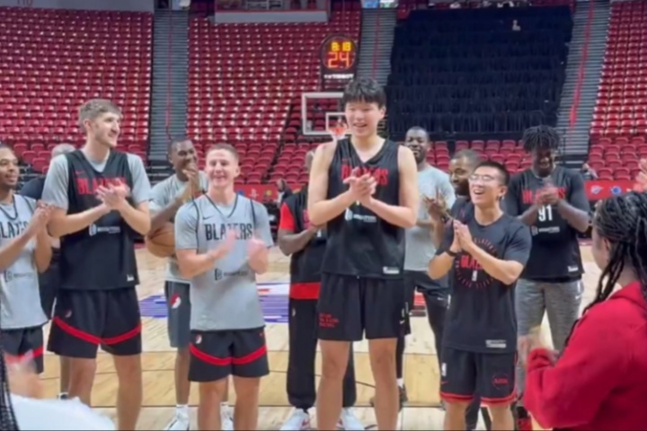 開拓者公關(guān)團隊的成員Maggie Yang今天過生日,楊瀚森領(lǐng)頭用中文為她(華人)唱生日快樂歌