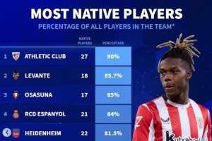 德轉(zhuǎn)列本土球員占比最高球隊: