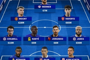 德轉(zhuǎn)列切爾西2021歐冠決賽首發(fā):當前總身價1.832億歐元