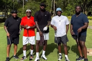 詹姆斯近日在波多黎各度假,他曬出了和幾位好友打高爾夫的合影,并寫道:“外面實(shí)在是太熱了???!哈哈”