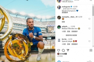 古斯托此役為切爾西踢滿全場,賽后他在社交媒體上曬出與獎杯的合照,配文:“現(xiàn)在它是我們的了,世界冠軍??”