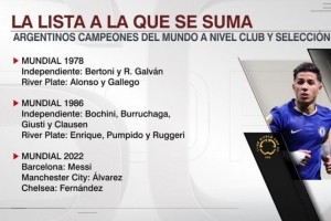 據(jù)ESPN統(tǒng)計(jì),恩佐是第14位獲得過(guò)世界杯+世俱杯冠軍的阿根廷球員。