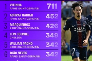 體育資訊7月15日訊 世俱杯傳球排名:維蒂尼亞711次斷層領(lǐng)先,前十巴黎占7位