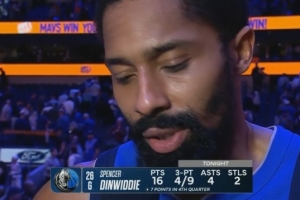 本場(chǎng)比賽,獨(dú)行俠球員丁威迪表現(xiàn)不錯(cuò),尤其是末節(jié)拿到7分命中兩記關(guān)鍵三分幫助球隊(duì)收下比賽,在30分鐘的時(shí)間里,投籃13中5,三分球9中4,罰球3中2,拿到16分3籃板4助攻2搶斷的數(shù)據(jù),正負(fù)值+13。
