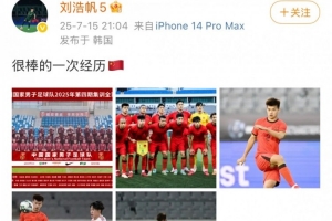 在和中國香港隊比賽結(jié)束后,劉浩帆更新社媒,曬出球隊全家福和比賽照等,并配文寫道:“很棒的一次經(jīng)歷?!?/p>