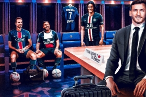 那不勒斯邊鋒克瓦拉茨赫利亞加盟巴黎,巴黎俱樂部官方社媒曬出海報(bào),內(nèi)容為卡瓦尼、拉維奇、法比安-魯伊斯在巴黎更衣室內(nèi)等待克瓦拉茨赫利亞。