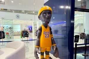 體育資訊7月16日訊 今天,湖人記者Harrison Faigen曬出了一張商店櫥窗里超大的詹姆斯玩偶。