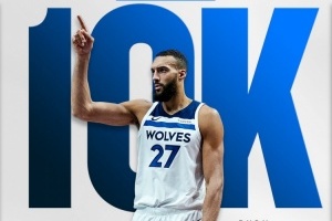 本場(chǎng)比賽過后,戈貝爾常規(guī)賽生涯總得分突破10000大關(guān)。