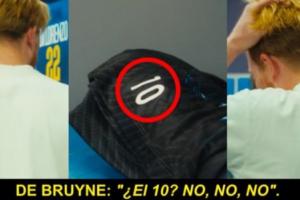 更衣室一段視頻流出,德布勞內(nèi)見(jiàn)到給自己準(zhǔn)備的是10號(hào)球衣時(shí),連聲說(shuō)nonono。隨后工作人員笑著解釋說(shuō)只是訓(xùn)練穿