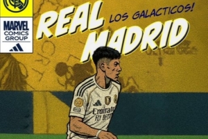 該博主曬出一張美漫風(fēng)格的漫畫封面,15號居勒爾作為主角,漫畫上印有“Opaleak獨家報道”、“漫威漫畫集團(tuán)”、“銀河戰(zhàn)艦皇家馬德里”等字樣。