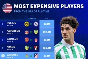 美國球員轉(zhuǎn)會費(fèi)榜:普利西奇6400萬居首,麥肯尼、卡爾多索在列
