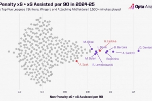 數(shù)據(jù)統(tǒng)計(jì)顯示,不計(jì)點(diǎn)球情況下,埃基蒂克上賽季在聯(lián)賽的每90分鐘預(yù)期參與進(jìn)球值高達(dá)0.91,這一數(shù)字僅次于登貝萊、索爾洛特、巴爾科拉和拉菲尼亞,在同期至少出場(chǎng)1500分鐘 的五大聯(lián)賽前場(chǎng)球員(中鋒、邊鋒和前腰)位列第5位。