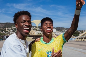 體育資訊7月18日訊 巴西球星維尼修斯更新社交媒體動態(tài),他曬出與自己蠟像的合影。