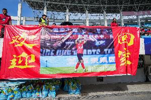 今天長(zhǎng)春體育中心體育場(chǎng)的看臺(tái)上一抹紅色為故人綻放,橫幅上萊昂納多的照片和“歡迎回家”四個(gè)大字,是長(zhǎng)春亞泰球迷在以最熾熱的方式擁抱舊將。