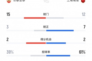 體育資訊7月18日訊 中超第17輪,上海海港3-1擊敗長春亞泰。本場比賽數(shù)據(jù)出爐。