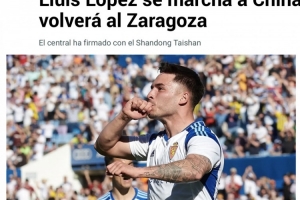 路易斯-洛佩斯這位中衛(wèi)已與山東泰山簽約,且不愿繼續(xù)等待薩拉戈薩俱樂(lè)部可能開出的續(xù)約條件。路易斯-洛佩斯在薩拉戈薩的合同已于6月30日到期,而俱樂(lè)部始終未明確表態(tài)其去留問(wèn)題。體育總監(jiān)切馬-因迪亞斯曾公開表示:“是否續(xù)約將取決于轉(zhuǎn)會(huì)市場(chǎng)變化”。