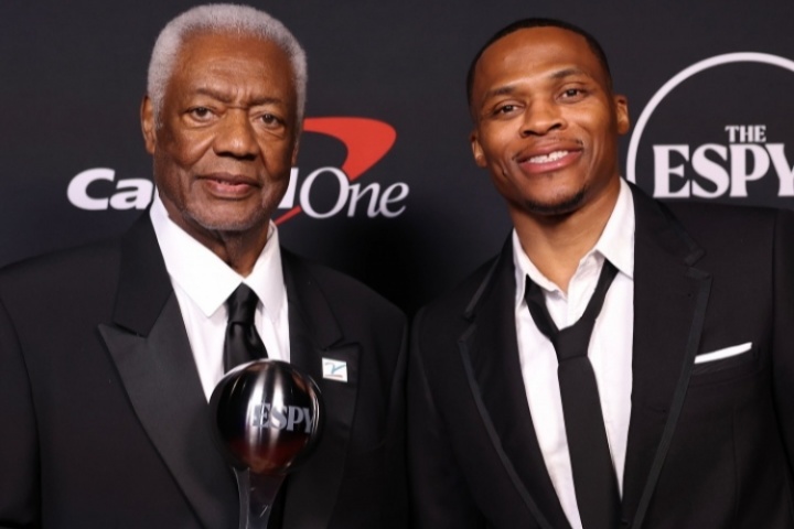 體育資訊07月20日訊 近日,NBA球員拉塞爾-威斯布魯克作為嘉賓在ESPY頒獎典禮上為奧斯卡-羅伯特森頒發(fā)了阿瑟-阿什勇氣獎杯。