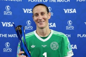 體育資訊7月21日訊 北京時間昨天凌晨,德國女足通過互罰點(diǎn)球6-5擊敗法國女足,打入今年女足歐洲杯半決賽,德國女足門將貝格爾(Katrin Berger)在比賽進(jìn)行到第103分鐘時,上演一次了精彩撲救,避免了本隊(duì)的丟球。