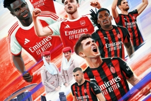今日阿森納官方社媒發(fā)布季前賽對陣AC米蘭的海報,海報中槍手薩卡、厄德高、賴斯 VS 米蘭普利西奇、萊奧等球員。
