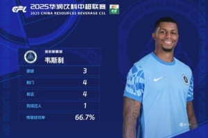 韋斯利夏窗加盟新鵬城,在中超第17輪深圳新鵬城主場(chǎng)對(duì)陣青島海牛的比賽中,這位前鋒迎來(lái)首秀,他4次射門4次射正打進(jìn)3球上演帽子戲法,最終幫助深圳新鵬城4-0取勝。