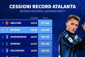 體育資訊7月22日訊 德國轉(zhuǎn)會市場統(tǒng)計了亞特蘭大出售球員的轉(zhuǎn)會費,并列出榜單,霍伊倫居首,雷特吉、庫普梅納斯前三,而盧克曼可能在今夏離隊上榜,預計轉(zhuǎn)會費4000萬到5000萬歐元。
