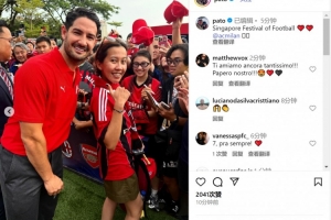 米蘭將在新加坡的季前賽中對陣阿森納,米蘭名宿帕托在新加坡參加季前賽活動(dòng),曬出與球迷的合照,配文:“新加坡足球節(jié)日。”