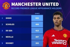 德轉(zhuǎn)列曼聯(lián)隊(duì)史英超出場(chǎng)榜: