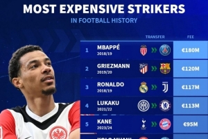體育資訊7月24日訊 德國(guó)轉(zhuǎn)會(huì)市場(chǎng)統(tǒng)計(jì)了足壇歷史前鋒(中鋒)的轉(zhuǎn)會(huì)價(jià)格,并列出榜單,從法蘭克福轉(zhuǎn)會(huì)利物浦的埃基蒂克排名并列第5位。