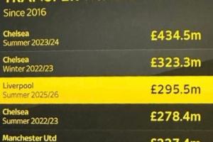 ??英超轉(zhuǎn)會窗砸錢榜單:切爾西4.35億英鎊排名第一(自2016年以來)