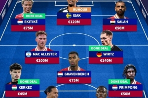 德轉(zhuǎn)列利物浦新賽季主力陣:總身價7.58億歐元