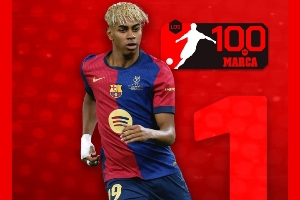 體育資訊07月25日訊 西班牙媒體《馬卡報》發(fā)起24/25賽季世界足壇百大球星評選,18歲亞馬爾當(dāng)選賽季最佳球員,以超過200分的優(yōu)勢力壓登貝萊和維蒂尼亞獲獎。