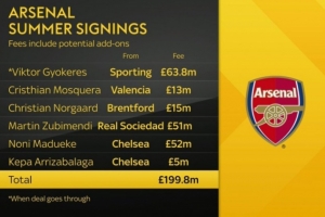 體育資訊7月25日訊 近日,天空體育盤點了阿森納截止目前的引援情況,他們引進(jìn)六名球員一共花費了近2億歐元。