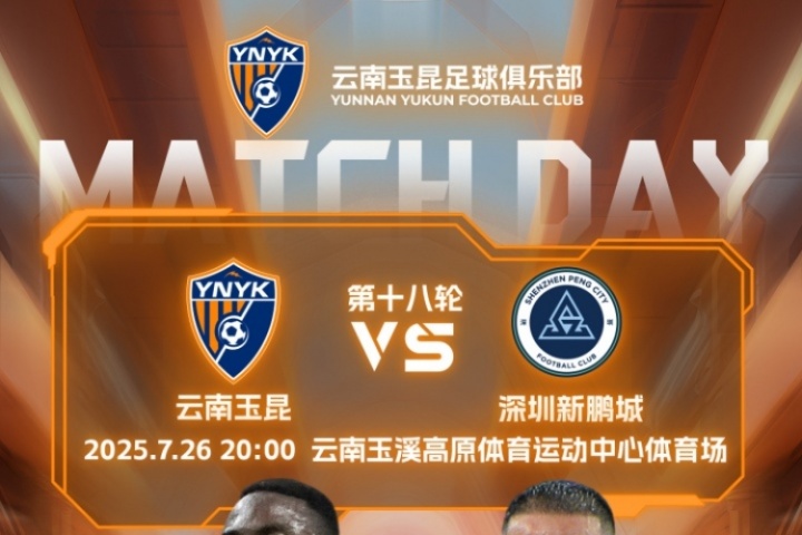 體育資訊07月26日訊 20點中超第18輪,云南玉昆主場迎戰(zhàn)深圳新鵬城。