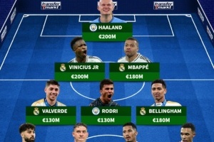 后腰:巴爾韋德(皇馬,1.3億)、羅德里(曼城,1.3億)、貝林厄姆(皇馬,1.8億)