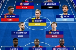 中場:桑喬(曼聯(lián),2800萬)、本坦庫爾(熱刺,3000萬)、布蘭特(多特,2500萬)、德容(巴薩,4500萬)、B席(曼城,3800萬)