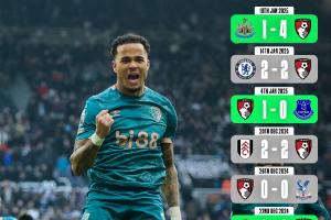 體育資訊01月19日訊 本輪英超,伯恩茅斯4-1大勝紐卡,升至英超第6位。