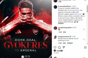經(jīng)紀公司社媒曬出約克雷斯加盟阿森納的海報,配文:“來到倫敦!我們的瑞典球星約克雷斯已經(jīng)與英超豪門阿森納簽下了長期合同!”