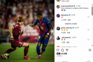 賽后拉什福德也在個(gè)人社媒曬出本場(chǎng)照片,配文寫道:“身穿巴薩球衣首次賽場(chǎng)亮相,加油????”