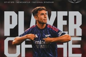 此役新援祖比門迪為阿森納首發(fā)出戰(zhàn),阿森納官方宣布,祖比門迪當(dāng)選本場比賽阿森納隊內(nèi)最佳球員。